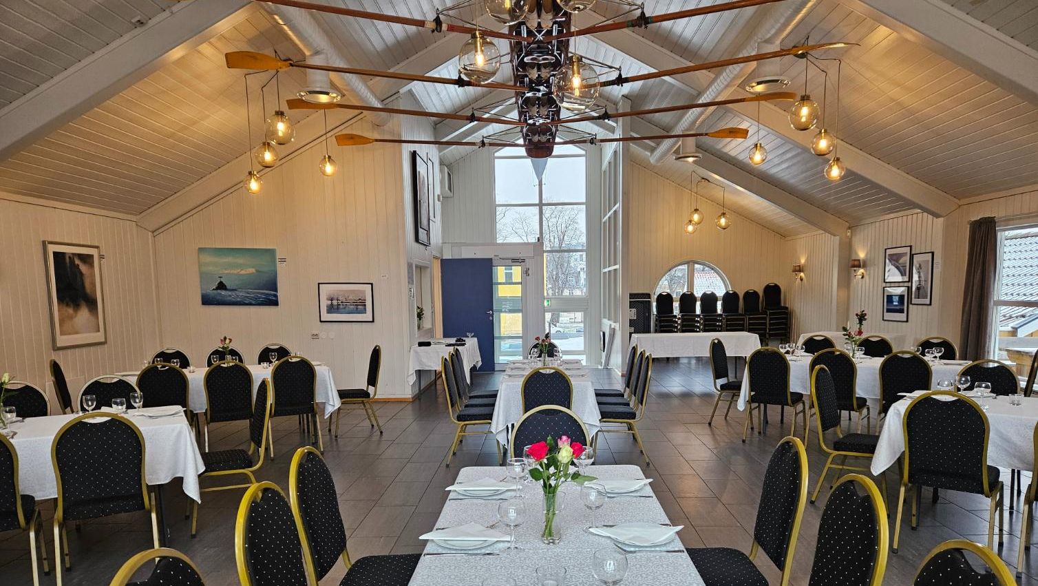 Et flott selskapslokale med majestetisk utsikt over sjøen. Rolige omgivelser, god plass og velegnet for både minnestund og selskap.
